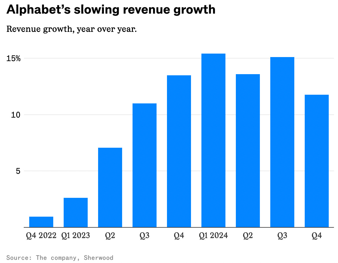Alphabet’s stock took a hit after the tech giant’s Q4 revenue fell short of Wall Street’s expectations, signaling a slowdown in growth. Shares dropped 7.1% after hours, sliding as much as 8% immediately following the report.