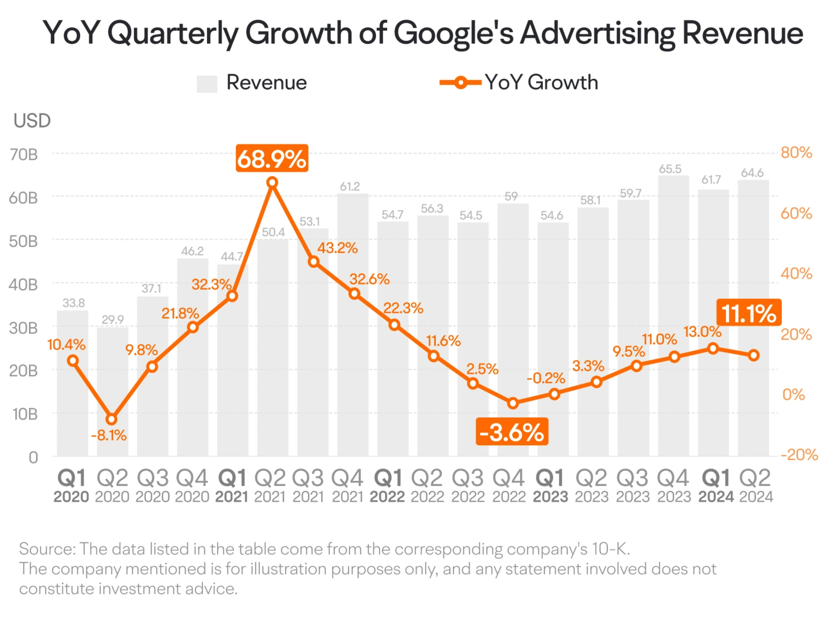 Google Advertising: $72.4 billion (+10.6% YoY) – Digital ads holding strong